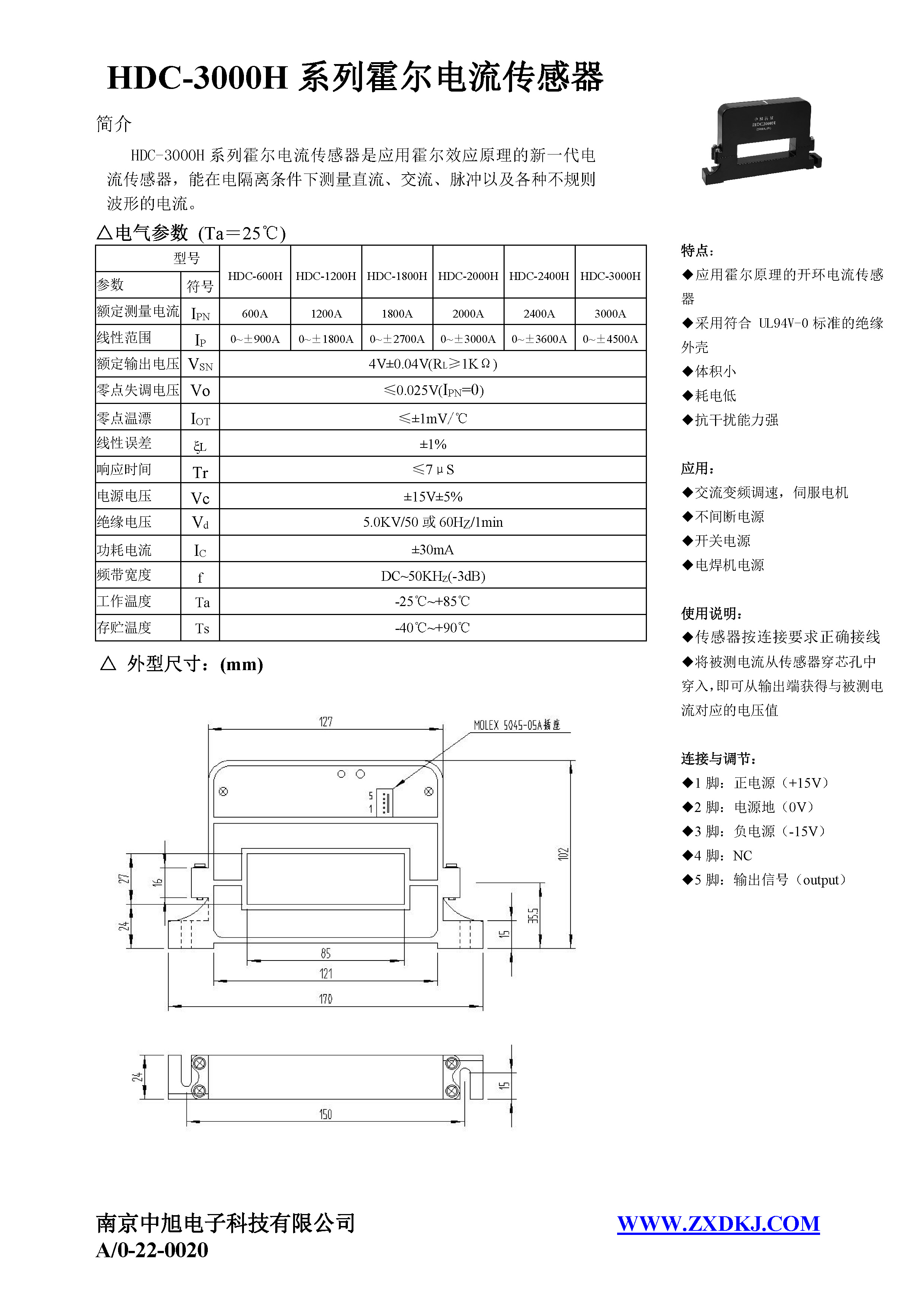 HDC-2000H series Hall current sensor is a new generation of current sensor using the principle of Hall effect. It can measure currents of DC, AC, pulse and various irregular waveform under electrical isolation.